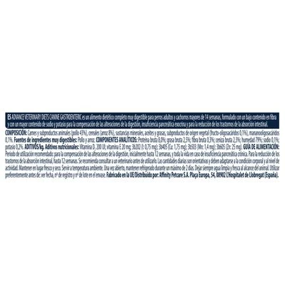 Advance Gastroenteric Veterinary Diets está indicado para perros que sufren problemas digestivos, para que puedan realizar una buena absorción de nutrientes. Este alimento dietético es apropiado para cachorros de más de 14 semanas, así como para perros adultos que padecen afecciones de absorción intestinal agudas o insuficiencia pancreática exocrina.