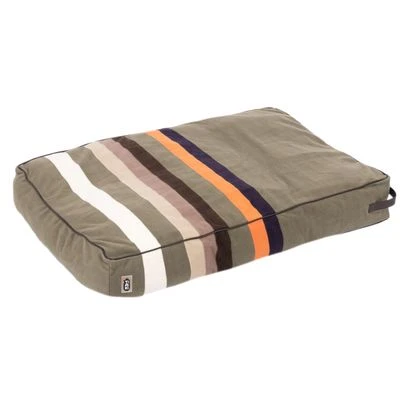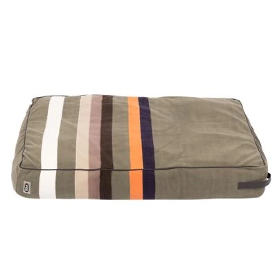 Cojín blando para perros de tamaño mediano y grande, diseño bonito, aisla del frío, detalles de piel sintética, funda apta para lavadora, color: oliva con rayas de colores