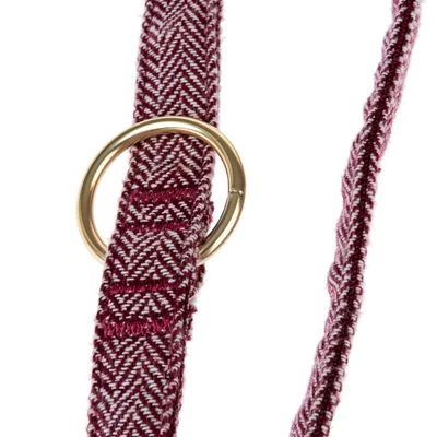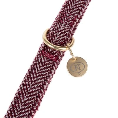 Pero la correa para perros Calma burdeos de Nomad Tales no solo es funcional; a nivel visual, es una verdadera joya. Su tono burdeos elegante, el estampado atemporal en espiga y los elementos metálicos en un sofisticado dorado mate le confieren a la correa un toque exclusivo. Si lo prefieres, puedes combinarlo con el collar y el arnés a juego para que tu amigo esté totalmente conjuntado.