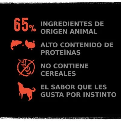 - Con abundante carne: al menos 65 % de ingredientes de origen natural
