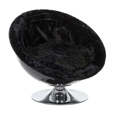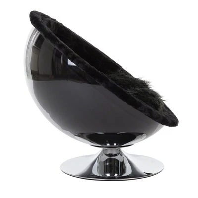 El sofá acrílico se puede revestir completamente con la suave tela de felpa negra que se adjunta, y que se ajusta fácilmente al borde del sofá por medio de unos elásticos. Un gran cojín de felpa de pelo largo invita a relajarse y dormir.